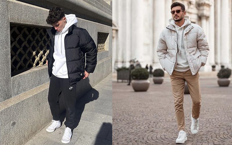 ترکیب هودی و کاپشن بادی در تیپ پاییزی مردانه