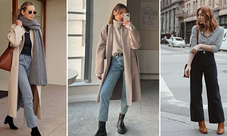 برای داشتن یک استایل رسمی و شیک می‌توانید یک کفش کالج چرمی مشکی را با یک شلوار پارچه‌ای مشکی ست کنید و برای تکمیل استایلتان یک مانتوی کُتی طوسی به آن اضافه کنید.
